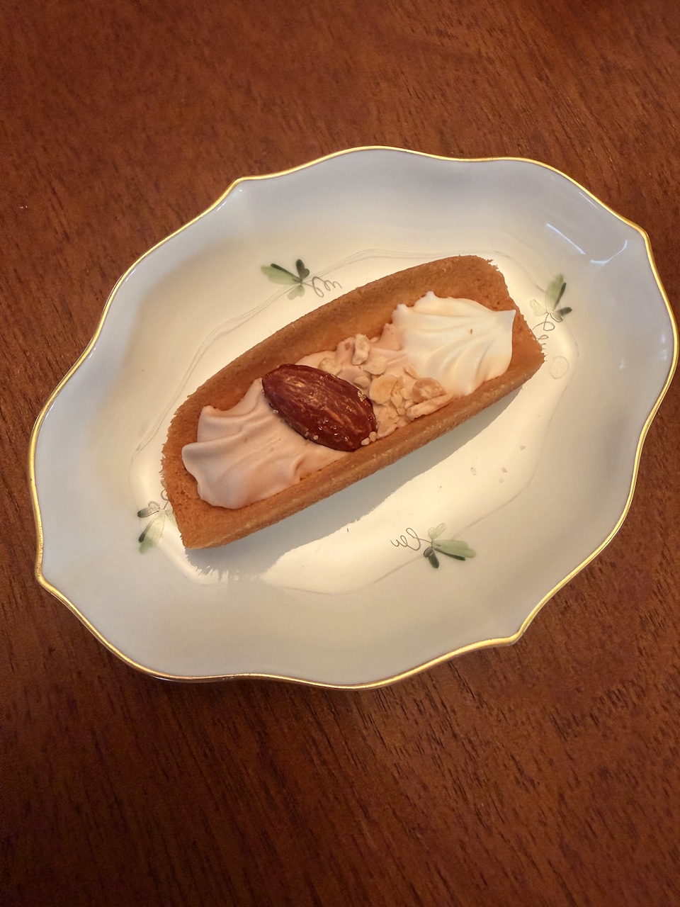 2025年11月グラマシーニューヨーク「アーモンドチョコバレット」 2025.11.03 2025年11月はグラマシーニューヨーク「アーモンドチョコバレット」です。 「香り高い発酵バターを使用しさっくり焼き上げたラングドシャに、ヘーゼルナッツプラリネを使用したミルクチョコレートをのせ、クーベルチュールをブレンドしたクリームを絞り、塩を振ったアーモンドキャラメリゼを飾りました。アーモンドとチョコレートが一体となったチョコレート菓子です。」(ホームページより) サクッとした食感が印象的で、アーモンドがアクセントになっています。 コーヒー、紅茶、どちらでも良く合いそうです。 ※アレルギー対応いたしますので、アレルギーをお持ちの方は遠慮なくお知らせください。 関連 Post 2025年10月tissage「パンプキンタルト」 2025.11.03 2025年11月グラマシーニューヨーク「アーモンドチョコバレット」 2025.10.05 2025年10月tissage「パンプキンタルト」 2025.09.04 2025年9月「薫るバターサブリナ」 2025.08.03 2025年8月両口屋是清「ささらがた」 2025.07.02 2025年7月鹿鳴館「ローズジェル」 2025.06.04 2025年6月ジェルソンミーナ「パンテレッリア」 2025.05.02 2025年5月五感のレモンケーキ 「檸檬燦」 2025.04.05 2025年4月フーシェ「桜タルト」 2025.03.02 2025年3月アンリ・シャルパンティエ「春のしあわせサブレ」 2025.02.02 2025年2月べルアメール「アルティザンパレショコラ」